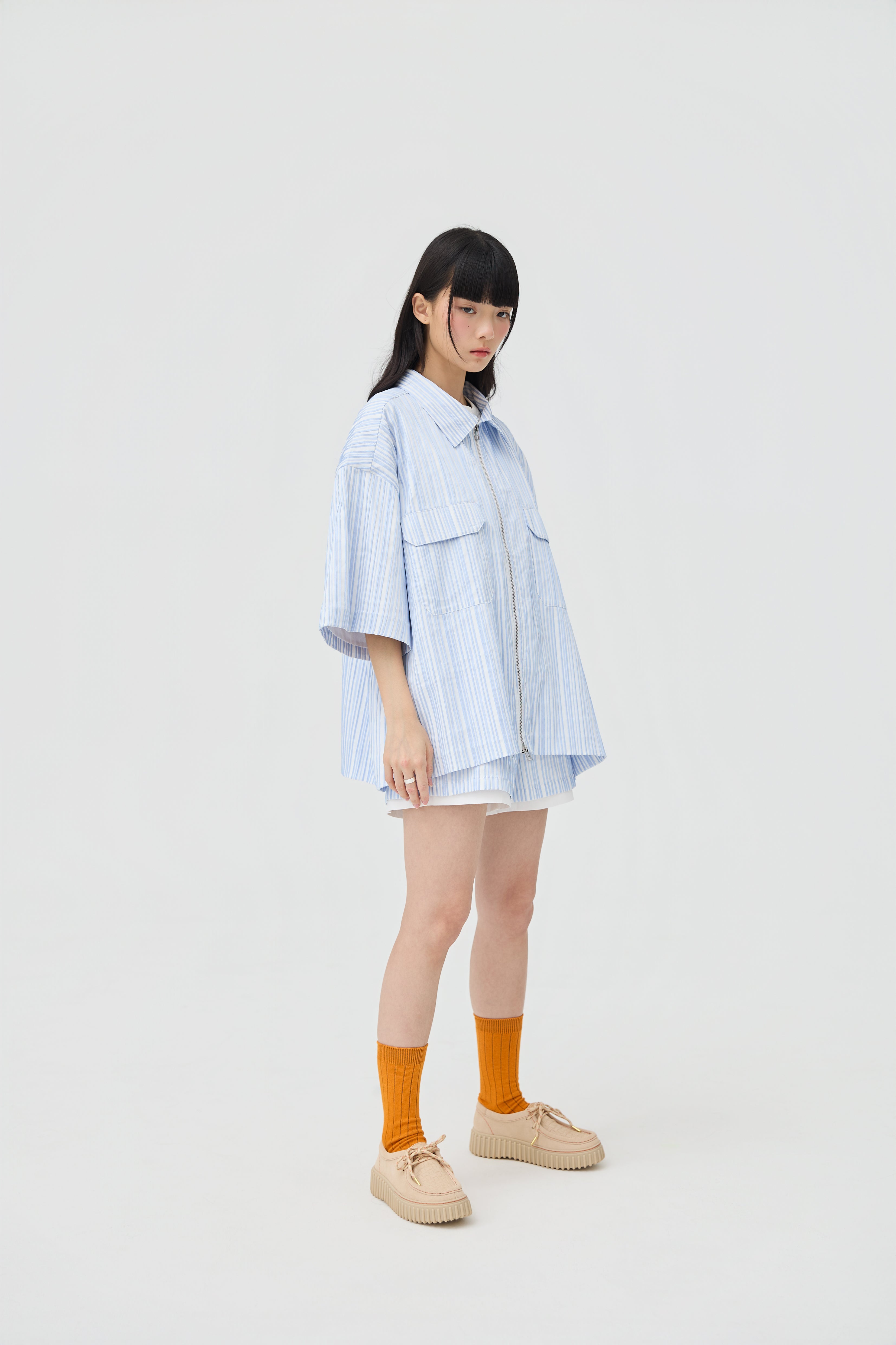 Evoking puff, air, and softness, this lightweight jacket pairs easily with structured or casual layers. This jacket brings lightness and a gentle tactile layer. Made in a one size fits all silhouette. Finished with a metal two-way zipper.